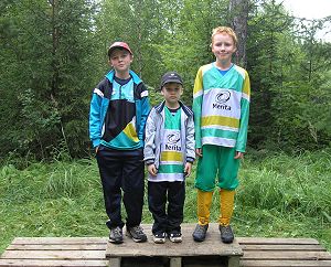 Palkintopallilla vasemmalta lukien Rautalan Akseli, Anttilan Juho ja Hirvosen Olli-Pekka. Pojat siis ykkösinä poikaoravien sarjassa.