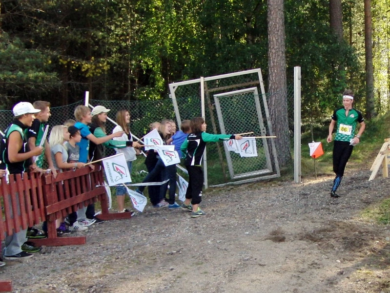 Kakkosen ankkuri Henri huudetaan niin ikään maaliin.    Varajuoksijamme Jenna Kuoppamäki pääsi edustamaan tyylikkäästi Puolangan Ryhtiä. Samoin tekivät Vesamäen Sami Olavin Rastin joukkueessa ja Hyvärisen Ella Tampereen Pyrintö 5:ssä.    Tämä NuJu oli viimeinen 18-vuotiaille Siirille, Jennalle ja Henrille. Iso kiitos panoksestanne joukkueidemme eteen eri nuorisoviesteissä ja menestystä 20-sarjaan!    Viikon päästä kisataan Lapualla Koululiikuntaliiton mestaruuskilpailuissa. Seuraava Nuorten Jukola on vuorossa 2012 Mynämäellä.    > Järjestäjän kisasivut  > Matkaennakot  > Järjestäjän tulossivut  > Reittihärveli. Mehän sovimme että kaikki piirtävät nyt sunnuntain aikana  > Valokuvia