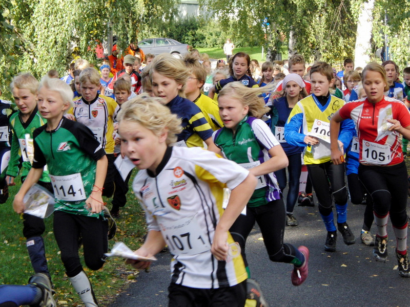 Nuorisoviesti- ja Oravatonniviikonloppu   Tämänkertainen leirijoukko iloisena lähdössä kisaan    Vuoden 2011 Nuorisoviesti- ja Oravatonniviikonloppu käydään Raisiossa ja Nousiaisissa. Matkassa on 33 varsaa ja kuskinamme on jälleen Rami.    Majoituimme Kunstenniemen leirikeskukseen Rymättylässä. Täytyy sanoa,että keskus on HIENO. Täällä on mahtavat majoitukset ja ruokala. Ruoka on hyvää ja palvelu mahtavaa. Mökkiin kuuluu viimeisen päälle oleva rantasauna. Tänään lauantaina kävimme vielä savusaunassakin. Siellä vasta mahtavat löylyt sai myrskylyhtyjen valaistessa ikkunoiden takana. Ja tämä ympäristö. Tammia ja muita jalopuita sekä rannikon mäntyjä on niemi täynnä. Tänne kannattaa tulla uudestaankin ja itse asiassa ensi syksyn majoitus onkin jo varattuna.    Lauantaina kisattiin siis Nuorisoviestissä. Kilpailussa on kolme sarjaa: 7-osuuksinen A-sarja, jossa maksimi yhteenlaskettu ikä on 100 vuotta ja vanhin juoksija saa olla 16-vuotias. Joukkueessa pitää olla kaksi tyttöä tai enemmän. Rastivarsoila oli kaksi joukkuetta. B-sarjassa on 4 juoksijaa, vanhin saa olla 12 vuotta, joukkueen yhteisikä saa olla enintään 44 vuotta ja mukana pitää olla ainakin yksi tyttö. C-sarjassa on kolme osuutta eikä ikä- tai sukupuolirajoitteita ole.    A-sarjassa Rastivarsojen ykkösjoukkue kamppaili koko ajan sijoilla 8.-22. Olli aloitti hyvin, mutta pikku koukun jälkeen tuli vaihtoon sijalla 22. (50 joukkuetta). Aatu tempoi kakkososuuden lenkkareilla huimaa vauhtia. Nastarit oli nimittäin Orimattilassa. Sijaluku oli vaihdossa 8. Siitä eteenpäin sija vaihteli 13. ja 15. välillä päätyen Miskan hyvän loppunousun ansiosta loppusijaan 13. (viime vuonna 17.). Kakkosjoukkueelle tuli valitettavasti hylsy ykkösosuuden viidennellä rastilla. Maastossa oli rasteja tosi lähekkäin, sillä soveliaita rastipisteitä oli vähän. Ilman hylsyä vauhti olisi oikeuttanut noin 30:nteen sijaan. Kakkosenkin vauhti ja osaaminen tuli siis mitattua hyväksi.