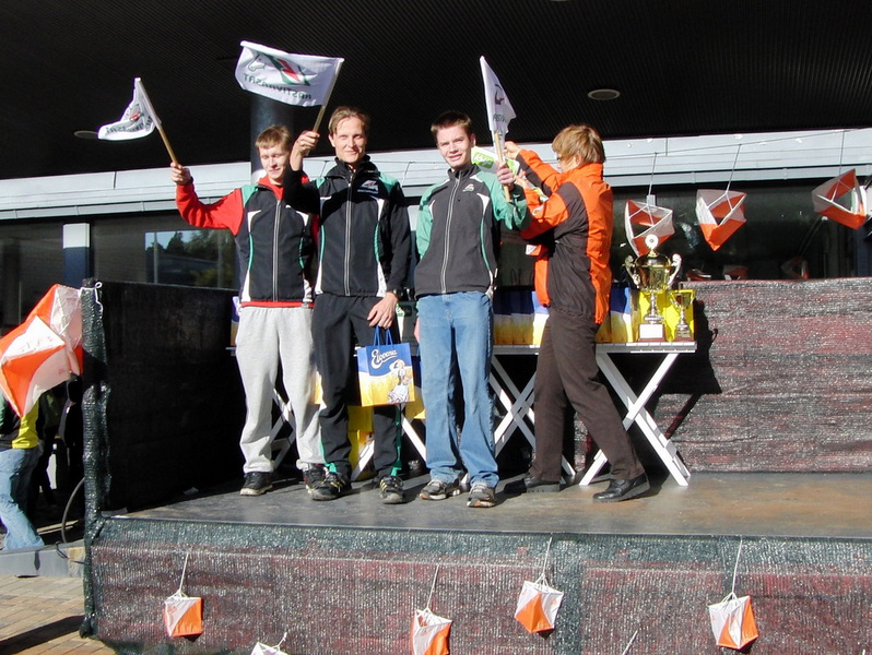 Tyytyväinen joukkue podiumilla. "Taikurit" olivat itsekin hämmästyneitä tuloksestaan    Sunnuntain Oravatonnissa kerättiin pisteitä seuralle henkilökohtaisessa kilpailussa sarjoissa H/D16 ja nuoremmat. Orimattilalaisten parhaasta tuloksesta vastasi Lauri Leirimaa sijoittumalla H13-sarjassa seitsemänneksi tuoden viisi pistettä. Koska pisteitä keräsivät sarjojensa 11 parasta, kartuttivat pottia myös Anni Kyrö (8./D13), Eemeli Kiljunen (8./H13), Olli Liikkanen (9./H14), Lassi Kuva (9./H11) ja Aino Kuusela (9./D11). Erityisen iloinen yllätys oli vasta vähän aikaa suunnistaneen Ainon menestys osallistujarikkaassa sarjassa.    Oravatonnin ulkopuolella Tatu suunnisti hienosti kansallisessa kisassa. Hän nappasi kolmannen sijan sarjassa H18.