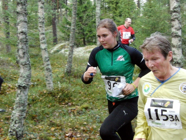 Annikalta hyvä suunnistus kolmosjoukkueen 3C osuudella.    > Kuvia (Jiipee)  > Kuvia (Hirppa, Jani)  > Kuvia (Hapardi)  > Kuvia (Järjestäjät, Ilkka Saarimäki)  > Reittihärveli (Lisää piirroksia mahtuu)  > Ennakot  > Kisasivut    Koska olimme kaikki lopen kyllästyneitä epäonnistumisiin, käytiin menomatkalla bussissa perinteiseen tapaan kilpailuohjeet huolella läpi. Viestitaktiikkaa painotettiin erityisesti. Lopuksi julistettiin kaksi kilpailua:    1) Ne, ketkä bussissa olijoista suunnistaisivat ykköselle ilman pummia tai koukkua saisivat palkinnon. Pysähtymistä ja varmistamista ei lasketa virheeksi    2) Ne, ketkä suunnistaisivat koko radan ilman virhettä saisivat erikoispalkinnon.    Liekö sitten palkinto ollut osasyynä vaikuttamassa, mutta haastavassa maastossa 25 bussissa matkustanutta löysi ykkösen suoraan. Lisäksi kahdeksan suunnistajaa onnistui suunnistamaan koko ratansa läpi virheettä.    Paluumatkalla Esa muistutti, että nyt aletaan rakentaa ensi kauden tulosta. Seuran talvikauden kalenteri on jo käynnistynyt ja parin viikon sisään käynnistyy täydellä teholla. Yhteisharjoituksiin kannattaa tulla vaikka vähän pidemmästä matkasta. Porukassa harjoittelemeninen on hauskempaa.    Tuloksia:  1) Rajamäen Rykmentti-1, FIN 3.36.32, 2) MS Parma-1 FIN, 3.37.47, 3) Delta-1 FIN, 3.37.59,.. 15) Rastivarsat-1 FIN 3.57.48 (Tatu Leirimaa 33.12/15, Olli-Petteri Hirvonen, Veli-Matti Pulli, Markku Hämäläinen 1.11.38/11, Elina Immonen, Emilia Hyvärinen, Jorma Hämäläinen 1.30.41/10, Tessa Pulli, Valtteri Rantala, Tuukka Tuomala 2.00.15/11, Hannu Laiho, Jarkko Ryyppö, Esa Orava 2.40.12/12, Irina Mihalko 3.09.08/12, Denis Glazunov 3.57.48/15),.. 50) Rastivarsat-2 FIN 4.44.37 (Hannu Heinilä 40.34/79, Aleksi Anttila, Tommi Maasilta, Jussi-Petri Hirvonen 1.30.51/72, Anni Kyrö, Eemeli Kiljunen, Miska Tervala 1.49.05/51, Siiri Lepola, Antti Lepola, Päivi Orava 2.21.28/44, Mikko Niskanen, Juha Kiljunen, Jyrki Tuokko 3.11.31/52, Maarit Dahlman-Tervala 3.49.42/53, Heikki Jokinen 4.44.37/50),.. 109) Rastivarsat-3 FIN 7.05.30 (Harri Henttonen 1.06.40/129, Anneli Laine, Lassi Hirvonen, Sami Vesamäki 2.25.16/126, Ella Hyvärinen, Tapani Tuoresjärvi, Annika Tuoresjärvi 2.49.11/120, Teija Vehola, Kia-Lotta Hirvonen, Roosa Hyvärinen 3.45.23/115, Jouni Varamäki, Antti Vesamäki, Timo Lohikainen 4.50.01/108, Mervi Suni 5.31.33/106, Chris Keith 7.05.30/109).    Tuloksia, Paras Seura –kilpailu (40 seuraa ylsi pisteille):  1) Delta 133 p, 2) Rajamäen Rykmentti 115, 3) Paimion Rasti 105, 4) MS Parma 103, 5) Helsingin Suunnistajat sekä Lynx 87, 7) Tullinge SK (SWE) 86, 8) Vehkalahden Veikot 73, 9) Rastivarsat sekä Kalevan Rasti 57    Hajontakohtaiset tuloksia: HAJONTA : 1    1 1 Stepan Kodeda 13 MS Parma 1 30.14 A  4 1 Vili Niemi 4 Rajamäen Rykmentti 1 30.49 C  5 2 Teemu Väre 3 Paimion Rasti 1 30.52 D  8 1 Daniel Stenlund 3 Paimion Rasti 1 31.15 B    23 1 Tatu Leirimaa 85 Rastivarsat 1 33.12 A  97 2 Olli-Petteri Hirvonen 85 Rastivarsat 1 36.20 C  100 2 Veli-Matti Pulli 85 Rastivarsat 1 36.30 D  159 2 Markku Hämäläinen 85 Rastivarsat 1 38.26 B  207 1 Hannu Heinilä 42 Rastivarsat 2 40.34 A  239 2 Tommi Maasilta 42 Rastivarsat 2 41.56 B  268 2 Aleksi Anttila 42 Rastivarsat 2 43.55 D  372 2 Jussi-Petri Hirvonen 42 Rastivarsat 2 50.17 C  423 2 Anneli Laine 96 Rastivarsat 3 54.29 B  504 1 Harri Henttonen 96 Rastivarsat 3 1.06.40 C  507 2 Lassi Hirvonen 96 Rastivarsat 3 1.07.54 A  522 2 Sami Vesamäki 96 Rastivarsat 3 1.18.36 D    HAJONTA : 2    1 3 Johan Hedman 125 OK Lalle 2 15.19 C  1 3 V. Kent 125 OK Lalle 2 15.48 B  4 3 Simon Imark 64 Tullinge SK 2 16.07 A    30 3 Miska Tervala 42 Rastivarsat 2 18.13 B  40 3 Emilia Hyvärinen 85 Rastivarsat 1 18.32 B  42 3 Jorma Hämäläinen 85 Rastivarsat 1 18.36 C  99 3 Eemeli Kiljunen 42 Rastivarsat 2 20.32 A  111 3 Elina Immonen 85 Rastivarsat 1 21.08 A  151 3 Anni Kyrö 42 Rastivarsat 2 22.21 C  199 3 Annika Tuoresjärvi 96 Rastivarsat 3 23.54 B  275 3 Tapani Tuoresjärvi 96 Rastivarsat 3 27.27 C  328 3 Ella Hyvärinen 96 Rastivarsat 3 30.48 A    HAJONTA : 3    1 4 Jonny Nilsson 88 Snättringe SK 1 24.13 C  2 6 Inga Dambe 3 Paimion Rasti 1 24.24 B  3 6 Johanna Luhtala 93 Someron Esa 1 24.25 A    20 4 Valtteri Rantala 85 Rastivarsat 1 26.19 D  24 4 Tuukka Tuomala 85 Rastivarsat 1 26.43 B  73 6 Irina Mihalko 85 Rastivarsat 1 28.56 A  145 4 Tessa Pulli 85 Rastivarsat 1 32.00 C  154 4 Päivi Orava 42 Rastivarsat 2 32.23 B  189 4 Antti Lepola 42 Rastivarsat 2 33.47 C  209 4 Siiri Lepola 42 Rastivarsat 2 35.03 D  272 6 Maarit Dahlman-Tervala 42 Rastivarsat 2 38.11 A  342 6 Mervi Suni 96 Rastivarsat 3 41.32 C  354 4 Kia-Lotta Hirvonen 96 Rastivarsat 3 42.24 A  433 4 Roosa Hyvärinen 96 Rastivarsat 3 50.47 D  494 4 Teija Vehola 96 Rastivarsat 3 1.13.26 B    HAJONTA : 4    1 5 Jonne Lehto 8 Vehkalahden Veikot 1 31.25 B  2 5 Kim Fagerrud 3 Paimion Rasti 1 31.42 D  3 5 Oskari Liukkonen 1 Delta 1 31.42 C  10 5 Markus Lindeqvist 3 Paimion Rasti 1 33.03 A    93 5 Esa Orava 85 Rastivarsat 1 39.57 B  105 5 Jarkko Ryyppö 85 Rastivarsat 1 40.39 D  145 5 Jyrki Tuokko 42 Rastivarsat 2 43.02 C  150 5 Hannu Laiho 85 Rastivarsat 1 43.37 C  205 5 Juha Kiljunen 42 Rastivarsat 2 48.12 B  257 5 Mikko Niskanen 42 Rastivarsat 2 52.41 D  305 5 Timo Lohikainen 96 Rastivarsat 3 58.48 D  305 5 Antti Vesamäki 96 Rastivarsat 3 58.51 A  334 5 Jouni Varamäki 96 Rastivarsat 3 1.04.37 B    HAJONTA : 5    1 7 Tuomas Tervo 4 Rajamäen Rykmentti 1 41.38 C  2 7 Petteri Muukkonen 8 Vehkalahden Veiko 1 42.05 D  4 7 Simo-Pekka Fincke 5 Kalevan Rasti 1 43.56 A  10 7 Fredric Portin 3 Paimion Rasti 1 46.15 B    18 7 Denis Glazunov 85 Rastivarsat 1 48.40 A  44 7 Heikki Jokinen 42 Rastivarsat 2 54.54 A  110 7 Chris Keith 96 Rastivarsat 3 1.33.57 C   Heikki lentää 2. joukkueen ankkurina maaliin. (kuva: Hirppa)    Viestikilpailun ohessa suunnistettiin myös kuntos