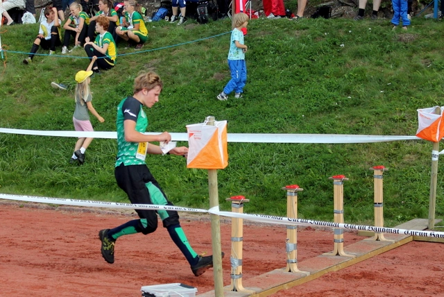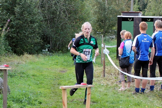 Valtteri näyttää, kuinka rastille tullaan eikä lasketella - kipeästä polvesta huolimatta      Kolmososuuden viestinviejä Anni Kyrö on jo kokenut Nujun ykkösjoukkueen viestinviejä. Varmuus ja nopeus olikin ratkaiseva valintaperuste tälle osuudelle. Anni näytti jälleen osaamisensa ja ajoi virheettömällä suunnistuksellaan osuutensa 16:ksi nopeimmalla ajallaan vajaan minuutin kärkeä kiinni. Sijoitus nousi näin kaksi pykälää eli 11:ksi.    Nelososuudella juoksi ykkösjoukkueen ensikertalainen Aatu Orava. Aatua oli pyydetty vetämään varmasti ja sitten vasta nopeasti. Ja näin Aatu myös teki. Varmalla suunnistuksella tämä nuori mies osoitti sopivansa kovaan paikkaan. Osuutensa 24. nopein oikeutti joukkueen jo sijaan 6. Kärjessä mentiin tällä osuudella kuitenkin niin kovaa, että ero kärkeen oli reilu kuusi minuuttia.    Viitososuudella eli 16-vuotiaiden tyttöjen osuudella suunnisti toinen ykkösjoukkueen ensikertalainen, Roosa Hyvärinen. Koska kyseessä oli ns. ”putkiosuus” eli kaikilla juoksijoilla oli samat rastit oli Roosa saanut ohjeet seurata, mitä muut tekevät. Itse piti suunnistaa koko ajan. Letkan kärkeen oli kehotettu olemaan menemättä. Mutta jos edellä olijat olisivat pummanneet, niin sitten olisi pitänyt kurvata suoraan rastille. Tälläkin osuudella oli GPS-seuranta. Roosa piiskasi itsensä peräti osuutensa viidenneksi nopeimpaan aikaan ja antoi maastoon todella kaikkensa. Kuvaavaa on, että kun Roosa juoksi yleisörastin jälkeiseen pystymäkeen muiden nopeiden tyttöjen kanssa, allekirjoittanut huusi: ”Nyt Roosa loikka päälle, älä anna periksi.” Vieressä seissyt Lammikko vastasi, että: ”Vai vaadit sinä loikkaa. Muut on kävelleet.” Mutta niin vain Roosa meni juosten niin kuin muukin letka. Tämän totesi Lammikkokin ääneen. Vielä kun kärkijoukkueet pummasivat tällä osuudella, niin Roosa supisti eroa kärkeen neljällä ja puolella minuutilla, puoleentoista minuuttiin. Sijoitus putosi yhdellä, voittajajoukkueen Ounasvaaran Hiihtoseuran Ella-Noora Rahkolan painaessa ohi.