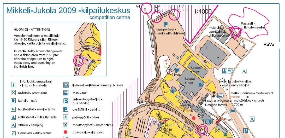 Rastivarsat Mikkeli-Jukolaan> Mikkeli-Jukolan 2009 nettisivut    Matka  Bussi lähtee Pekolan talleilta 9.30 ja Orimattilasta (Kerho, Teollisuustie 7, Sampola) klo 10.00. Ovimaksu nuorilta 10 euroa ja aikuisilta 20 euroa. Ilmoittautumiset bussiin Annelille; mistä tulossa ja ketä.    Leiri  HUOM!  Tuukalta tieto kilpailukeskuksesta: aiemmin ilmoitettu yhteisleiripaikka osoittautui liian pieneksi. Rastivarsoille on varattu oma majoitusteltta-alue pohjoisempaa, ks. oheinen kartta:  > RaVa-majoitus kilpailukeskuksessa, huom. uusi paikka!.    Joukkueet  Venloihin on ilmoitettu 6 kvartettia ja jusseihin 6 seitsikkoa. Kaikki halukkaat pääsevät juoksemaan. Ykkös- ja kakkosjoukkueiden valitsijoina tänä vuonna Päivi Orava ja Hanna Laine (Venlat) sekä Hannu Laiho, Heikki Jokinen, Jari Lehtonen sekä Tuukka Tuomala (Jukolan viesti). Nuorisolle sopivia osuuksia ovat sovitelleet Jussi-Petri Hirvonen ja Antti Lepola.     VENLAT  Osuudet ja arvioidut ajat (kärki)  1.osuus 7,0–7,1 km, 44 min, metsässä 15.00-15.44  2.osuus 6,5–6,6 km, 43 min, metsässä 15.44-16.27  3.osuus 5,9–6,0 km, 38 min, metsässä 16.27-17.05  4.osuus 8,6–8,7 km, 58 min, metsässä 17.05-18.03  Yht. 28,2 km, 3 h 3 min    JUSSIT  Osuudet ja arvioidut ajat (kärki)  1.osuus 12,4–12,5 km, 63 min, valoisa/hämärä, metsässä 23.00-00.03  2.osuus 12,6–12,7 km, 66 min, pimeä, metsässä 00.03-01.09  3.osuus 14,6–14,7 km, 79 min, pimeä, metsässä 01.09-02.28  4.osuus 9,3–9,4 km, 49 min, hämärä/valoisa, metsässä 02.28-03.17  5.osuus 9,4–9,6 km, 48 min, valoisa, metsässä 03.17-04.05  6.osuus 11,1–11,2 km, 60 min, valoisa, metsässä 04.05-05.05  7.osuus 16,5–16,7 km, 85 min, valoisa, metsässä 05.05-06.30  Yht. 86,5 km, 7 h 30 min  Matkoihin sisältyy 1 000 m viitoitusta.    Varsat lähtevät seuraavin joukkuein Venlojen ja Jukolan viestiin.  (c)= joukkueen kapteeni, huolehtii mahdollisista juoksijamuutoksista (sairastapaukset ym.) yhdessä muiden joukkueiden kapteenien kanssa. Netin kautta lopulliset juoksujärjestykset jätettävä la 13.6. klo 10.00 mennessä.    Palaverit:   - Naisjoukkueiden kokoontuminen ja valokuvaus teltoilla klo 13.30  - klo 20.00 teltoilla yhteispalaveri, jonka jälkeen miesjoukkueiden valokuvaus ja joukkuepalaverit (kapteenit tiedottakaa joukkueen jäsenille)    Rastivarsojen Venla-joukkueet  (toiveita kuultu, näyttöinä tämän vuoden suunnistuskisat ja viime vuoden venlanäytöt)    Rastivarsat 1 (nro 86)  1. Irina Mihalko  2. Maarit Dahlman-Tervala  3. Päivi Orava  4. Hanna Laine    Rastivarsat 2 (nro 230)  1. Emilia Hyvärinen  2. Siiri Lepola  3. Kirsi Arvela  4. Anneli Laine    Rastivarsat 3 (nro 335)  1. Anne Kuva  2. Leena Aalto  3. Tiina Aalto  4. Tiina Räty    Rastivarsat 4 (nro 353)  1. Anu Aalto  2. Minna Leirimaa  3. Anni Pitkänen  4. Jaana Myrsky    Rastivarsat 5 (nro 522)  1. Saija Toivola  2. Hanna Ojala  3. Jenna Kuoppamäki  4. Mervi Suni    Rastivarsat 6 (nro 533)  1. Tiina Hirvonen  2. Paula Valkjärvi  3. Susanna Aalto  4.     Rastivarsojen Jukola-joukkueet  (toiveet pyritty täyttämään, näyttöinä tämän vuoden suunnistuskisat)  MUOKATTU 11.6. klo 19:20  Rastivarsat 1 (nro 166)  1. Denis Glazunov  2. Tuukka Tuomala  3. Esa Orava (c)  4. Jari Lehtonen  5. Markku Hämäläinen  6. Heikki Vestola  7. Hannu Laiho    Rastivarsat 4 (nro 226)  1. Olli-Petteri Hirvonen  2. Heikki Jokinen (c)  3. Lauri Suomela  4. Tommi Leirimaa  5. Aleksi Anttila  6. Ville Laitinen  7. Petri Juurinen    Rastivarsat 2 (nro 532)  1. Jyri Mikkonen  2. Tomi Nieminen (c)  3. Jarkko Keinänen   4. Tatu Leirimaa   5. Kimmo Kalpio  6. Hannu Heinilä   7. Jyrki Tuokko    Rastivarsat 6 (nro 576)  1. Heikki Pitkänen  2. Veli-Matti Onnela  3. Jouni Mattila  4. Paavo Inkinen  5. Henri Munukka  6. Matti Railimo  7. Arttu Munukka    Rastivarsat 5 (nro 822)  1. Nillo Halonen  2. Chris Keith  3. Ari Kuva  4. Mikko Juhola  5. Lassi Hirvonen  6. John Laukka (c)  7. Olli Vuori    Rastivarsat 3 (nro 1163) "Dream-Team Kyöstilä"  1. Joonas Heiskanen  2. Tommi Salo  3. Harri Henttonen  4. Kalevi Aalto  5. Erkki Kilpinen  6. Jouni Tourunen  7. Ari Kyöstilä (c)