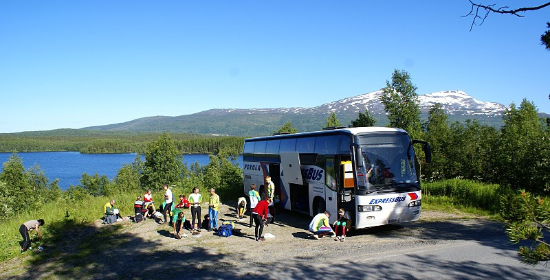 Ramin bussilla harkkaan    Suunnitelma matkaohjelmasta (Ramin bussilla) Pienet tarkennukset on mahdollisia    Sunnuntai 26.6.  05.30 Bussi lähtee Koneharjusta  06.00 Lastaus Orimattilassa Seuramajalla  06.20 Kuormaus Salpakankaalla S-matketin kohdalla pikavuoropysäkillä (Antti, Siiri, Kaija, Miska, Annika, Reima ja Olli)  08.00 Lastaus Tampereella Linnainmaan Prisman parkkipaikalla, Liikekatu 3, Tampere  45 min kahvitauko matkalla  - Jussi P kyytiin matkalta Keski-Suomessa  14.15 Lounastauko 1 h, ABC Tupos, Oulu - Mikko H ja Matti K kyytiin täältä  18.15 Saapuminen Ritavalkeaan, Pelloon  - Suunnistusharjoitus (Pellon Ponsi järjestää)  - Sauna  - Iltapala Pellon Ponnen suunnistusjaoston naisten järjestämänä  - Majoittuminen, noin 30 sänkyä - loput lattiapatjalla. Sängyt vanhimmasta alaspäin. (Kommentti tulevaisuuteen: Hyvin mahtui yksi bussikuorma, mutta yhtään enempää ei olisi mahtunut, makuupussi kannattaa laittaa majoitusvarustelistaan)    Maanantai 27.6.  06.30 Aamiainen ja tilojen siivous  07.30 Bussi liikkeelle  09.30 Muonio, ruokatarpeiden ostaminen kaupasta ja tauko  10.30 Liikkeelle kohti Kilpisjärveä  13.00 Ruokatauko Kilpisjärvellä Retkeilymajalla Saanan juurella  - noutopöytä tarjolla, 13€/henk ryhmällemme  14.00 Liikkeelle kohti Malangenia  16.15 Majoituksessa, Folkehögskola 69´ Nordissa  - harkka majoituksen lähikartalla  - peseytyminen  - päivällisen valmistaminen ja nauttiminen    Tiistai 28.6.  08.00 Aamiainen  09.30 Bussilla harjoitukseen Aursfjordiin (40 km) - kilpailujen virallinen harjoitusmaasto vuosisadan kartalla   13.00 Paluu ja lounaan valmistus sekä nauttiminen  15.15 Lähtö bussilla ensimmäiseen kisaan  18.00 alkaen 1. kisa, pitkä matka metsämaastossa, Kirkevik / Malangen alue.  - päivällinen kannattaa ruokailla kisakeskuksessa  22.30 mennessä paluu majoitukseen    Keskiviikko 29.6.  08.00 Aamiainen  09.30 Bussilla harjoitukseen noin 10 km - Nikkavatn - aivan uusi kartta ja virallinen treeni (15 rastia)  12.00 mennessä paluu ja lounaan valmistus sekä nauttiminen. Ohessa analyysit edellisen päivän kisasta ja ohjeet tämänpäiväiseen  Omaa valmistautumisaikaa, ehtii käymään vaikka lähikaupassa jalan  17.45 Lähtö bussilla toiseen kisaan. Matkalla analyysit jatkuu  20.00 alkaen 2. kisa, pitkä matka tunturimaastossa, Kirkevik / Malangen   (ns. keskiyön auringon kisa - tosin keskiyön aurinko saattaa olla lähempänä palkintojenjakoa)  - päivällinen kannattaa ruokailla jälleen kisakeskuksessa  01.00 mennessä perillä majoituksessa    Torstai 30.6.  09.00 Aamiainen  10.00 Bussi lähtee Tromssaan (vuono kiertäen +70 km, mutta vain 30 min pidempi, koska lautan aikataulut eivät sovi)  12.00 Saapuminen harjoitusmaastoon keskustan tuntumaan.  - harkka ja siirtyminen pesulle  - lounas kaupungilla ja omatoimista tutustumista kaupunkiin  18.00 alkaen 3. kisa, keskimatka esikaupungissa, Tromssa  - päivällinen kisakeskuksessa   22.00 mennessä paluumatkalle   24.00 mennessä majoituksessa    Perjantai 1.7.  08.00 Aamiainen  09.30 Harkka majapaikan lähellä  - ohessa analyysit edellisen päivän kisasta  11.30 Lounaan valmistus ja nauttiminen  12.45 Lähtö kisapaikalle  15.00 alkaen 4. kisa, pitkä matka vuonomaisemissa, Kirkevik / Malangen alue  - päivällinen kisapaikalla  22.00 mennessä paluu    Lauantai 2.7.  09.00 Aamiainen  Vapaata ohjelmaa, omatoimiretkiä, leiriolympialaiset (varatkaa mukaan erilaisia hauskoja vempeleitä)  - Ramin lakimääräinen lepopäivä - bussi ei liiku  - lounaan ja päivällisen valmistus sopivissa väleissä  - illalla varusteiden tarkastaminen ja pakkaus sekä alustava siivous (aamuksi ei jätetä kuin pakolliset)    Sunnuntai 3.7.  07.00 Aamiainen  07.30 paikkojen siivous ja bussin pakkaus  08.30 Ajo Kilpisjärvelle (huom, tällä reissulla paluumatkan aikataulusta unohtui tunnin aikaero)  10.30 Saapuminen Kilpisjärvelle ja Saanan valloitus  12.30 Lounastauko Kilpisjärvellä Retkeilymajalla (huom, varteenotettava vaihtoehto on myös yöpyminen Retkeilymajalla - edellyttää kahta kuljettajaa)  - noutopöytä tarjolla, 13€/henk ryhmällemme (tämä oli todella laadukas ja kaikki tykkäsivät saaneensa rahalle vastinetta)  - mahdollisuus suihkuun, 4€, oma pyyhe  13.30 Lähtö Pelloon  17.00 Tauko 45 min Muoniossa tai Kolarissa  19.00 Mennessä saapuminen Pellon Ritavalkeaan  - iltapala Pellon Ponnen suunnistusjaoston naisten järjestämänä  - sauna    Maanantai 4.7.  07.00 Aamiainen ja tilojen siivous  08.00 Bussi liikkeelle kohti Oulua  11.30 Lounastauko, ABC, Oulu (Tupos)  12.30 Bussi liikkeelle kohti Jämsää  - matkalla 45 min kahvitauko  18.30 Tampere, Linnainmaan Prisma  20.30 Orimattila Seuramaja  21.00 Pekolan tallit, Koneharju    Bussimatkalle lähtee 49 henkilöä ja kuski. Jos joku haluaa vielä mukaan ilman kisaamismahdollisuutta, niin pikaisesti yhteys JiiPee:hen. Harkat ja kuntorastit on joka tapauksessa mahdollisia. Perillä melkein kaikille on sängyt. Muutama nuori lattiapatjalla. Patjat löytyy paikan päältä. Muista omat liinavaatteet.    Lopullinen hinta *): (Kommentti: Ensi kerralla kannattaa laittaa 40 euron pelivara/matkustaja yllättäviin menoihin eikä näin tiukalle. Jos sitten on vielä varaa, voi paluumatkalla ruokkia koko porukan vaikka Kilpisjärven Retkeilykeskuksessa. Nyt pelkästään toukokuusta kesäkuuhun norjan kruunu vahvistui niin, että 600 euroa tuli kurssitappiota)  490 euroa / 17 vuotta ja vanhemmat  450 euroa / 16 vuotta ja nuoremmat henkilöt sisältäen  - bussimatkat   - majoitukset omin liinavaattein  - Ritavalkean ohjelmassa mainitut ateriat (iltapalat ja aamiaiset)  - harjoitukset karttoineen  - kisojen osallistumismaksut (TP maksanut erikseen ja hinta vähennetty osallistumismaksusta)    Järjestäjän aamiaiset on tilattu noin puolelle matkalaisista. Omatoiminen aamiaisen valmistus onnistuu yhtä hyvi
