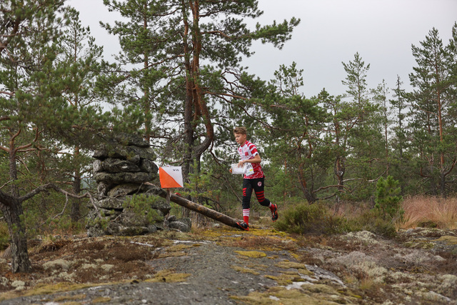 Toisen päivän avokallioilta. Paavo Heikkinen (Tampereen Pyrintö, H12) tulossa leimaamaan.